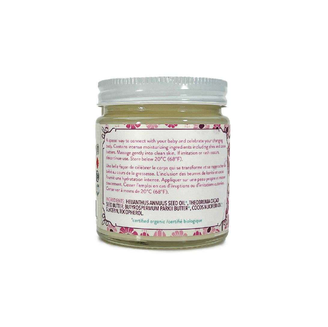 Pregnancy is an exciting time full of emotions. As your belly grows, you may experience itchiness or stretching sensations. A massage and moisturizing ritual with our rich Belly Butter is a special way to connect with your baby and celebrate your changing body. Intensely nourishing ingredients including shea and cocoa butters make it smell delightfully like chocolate.